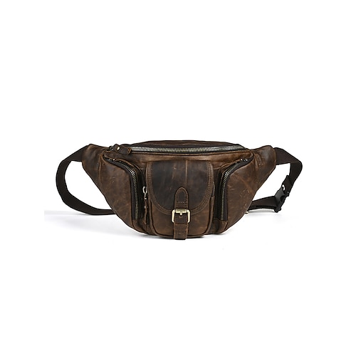Per uomo Cinturino da corsa Marsupio Borsa da petto Borsa a tracolla Pelle Casuale All'aperto Festa del papà Cerniera Tasche Multiple Grande Capacità Leggero Borsa Multiuso Tinta unica Marrone scuro