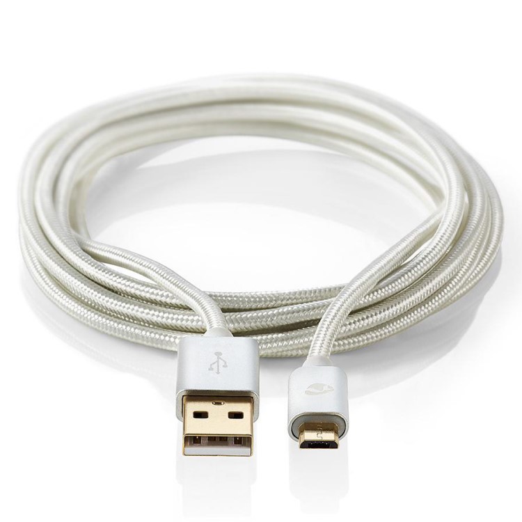 Nedis USB-kabel | USB 2.0 | USB-A Hane | USB Micro-B Hane | 480 Mbps | Guldplaterad | 1.00 m | Platt | PVC | Vit | Kartong med fönster
