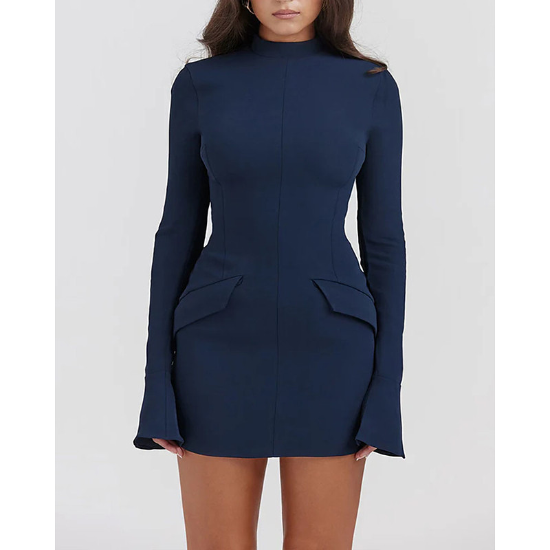 Women's Mini Dress Sheath Dress Fashion Modern Daily Office Vacation Regular Fit Plain Long Sleeve High Neck Black Navy Blue Spring Fall Winter