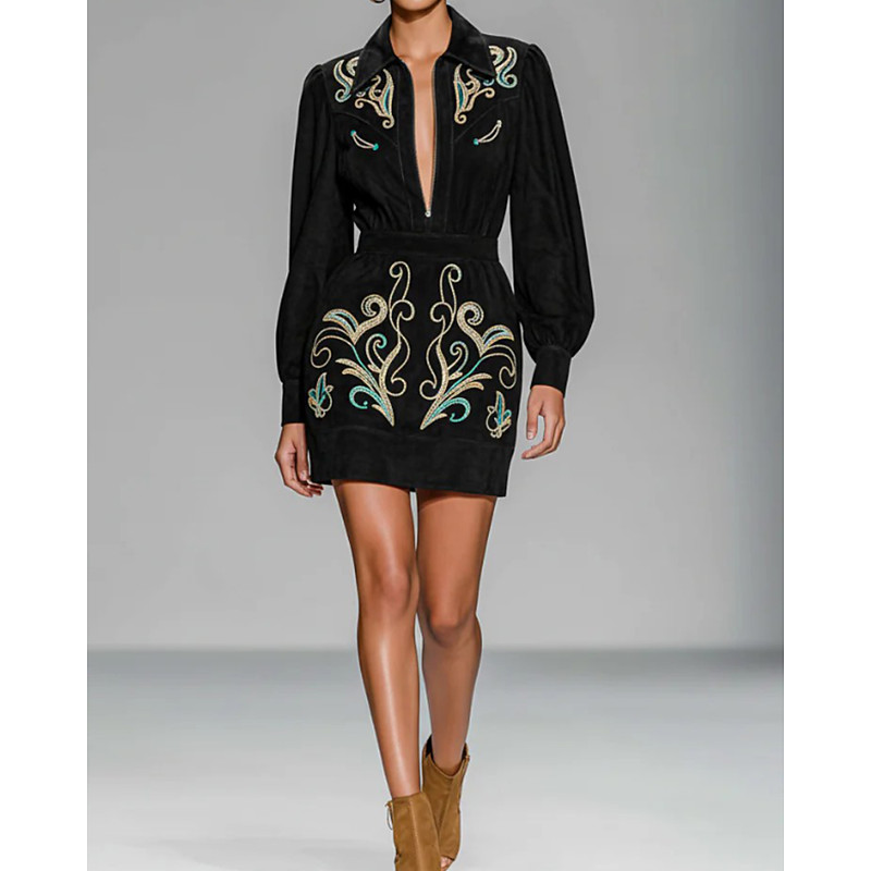 Women's Mini Dress Black Dress Party Dress Cocktail Dress Modern Evening Party Party Cocktail Party Regular Fit Floral Long Sleeve Shirt Collar Black Spring Fall