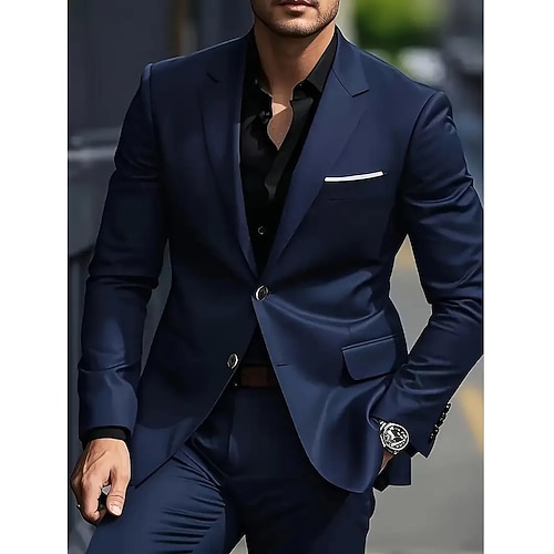 Uomo Matrimonio Feste Completi Bavero sciallato Nero Blu reale Moda Affari Tinta unita Vestibilità standard 2 pezzi Monopetto a un bottone