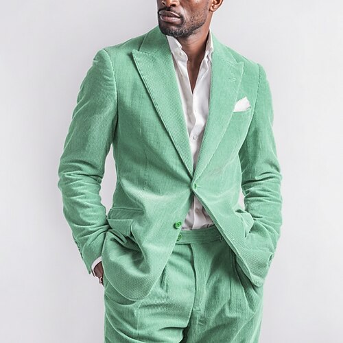 Uomo Casuale Feste Abito in velluto a coste Bavero classico Nero Borgogna Festa Casual Tinta unita Vestibilità su misura 2 pezzi Monopetto Due Bottoni