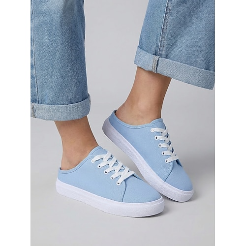 scarpe da ginnastica da donna con lacci in tela azzurra - scarpe da passeggio classiche, comode e piatte, scarpe da ginnastica minimaliste alla moda per tutti i giorni, viaggi, scuola, shopping,