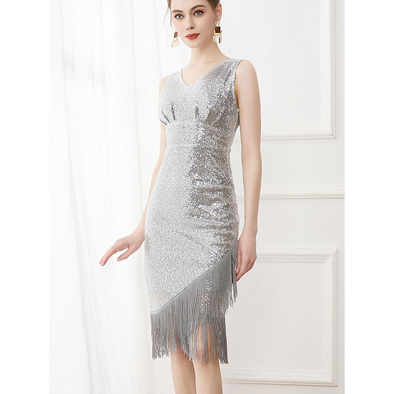 Roaring 20s 1920s Knee Length Flapper Dress Sleeveless The Great Gatsby Sequins Fringe V Neck Fancy Dress Women's Christmas Carnival Masquerade Retro Theme Party Charleston Dance Adults Dress