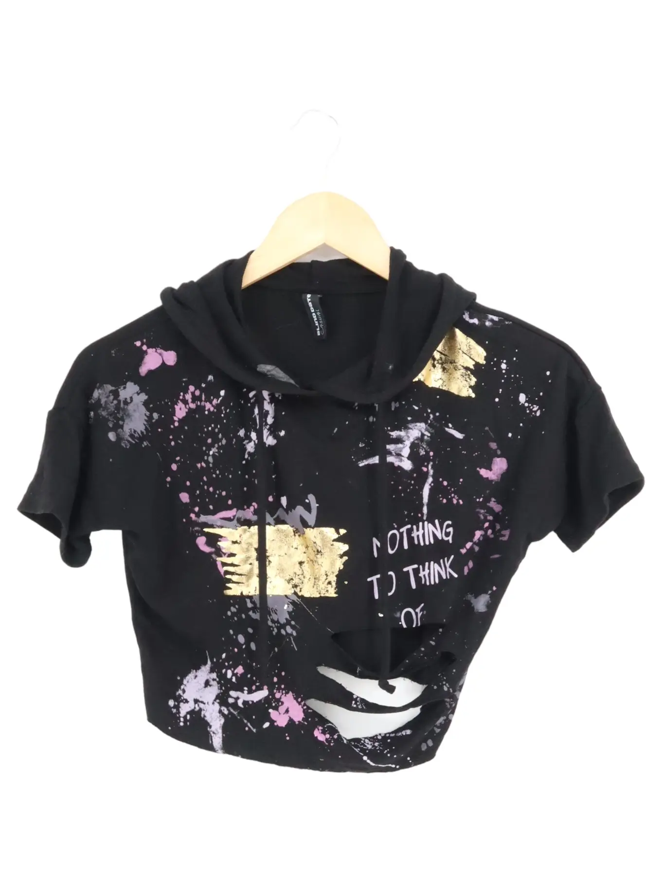 BLIND DATE Damen Hoodie S Schwarz mit Gold-Pink Splash