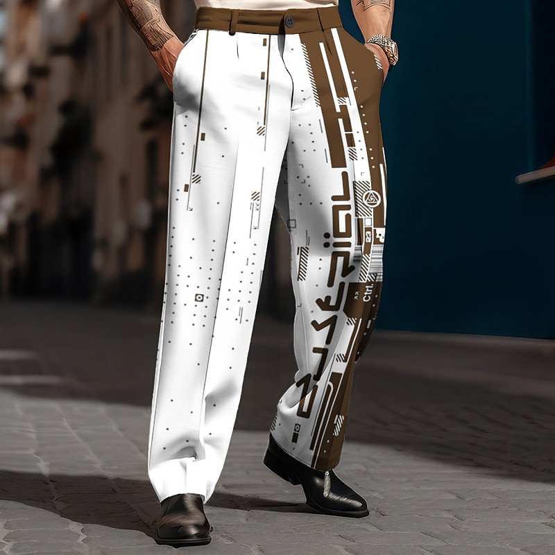 Geometry Business Men's 3D Print Pants Trousers Outdoor Street Wear to work Polyester Black White Brown S M L High Elasticity Pants