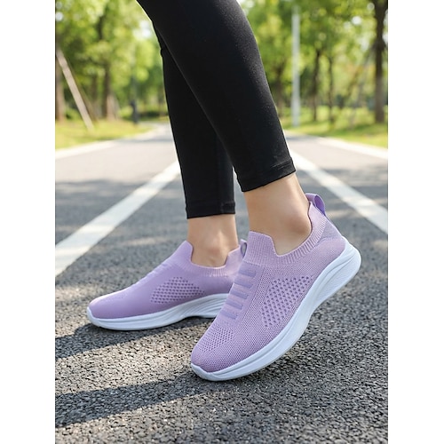 scarpe da ginnastica slip-on viola da donna - tomaia in Flyknit traspirante, leggere scarpe sportive morbide in stile calzino per camminare, palestra, viaggi, uso quotidiano allenamenti casuali