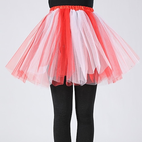 Karnevalskostüm 2026 Karneval Ausgefallene Kostüme Tutu Tüllrock Retro Vintage 1980er Weiß und Rot Erwachsene Damen Halloween Karneval Party Leistung Einfaches Karnevalskostüm Verkleiden