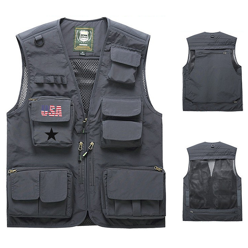 Men's US Flag Vest Gilet Fishing Vest Tactical Practical Casual Photography Camping Hiking Hunting Quick Dry Multiple Pockets Fishing Vest with Removable Mesh Back Fall Winter Collarless Sleeveless