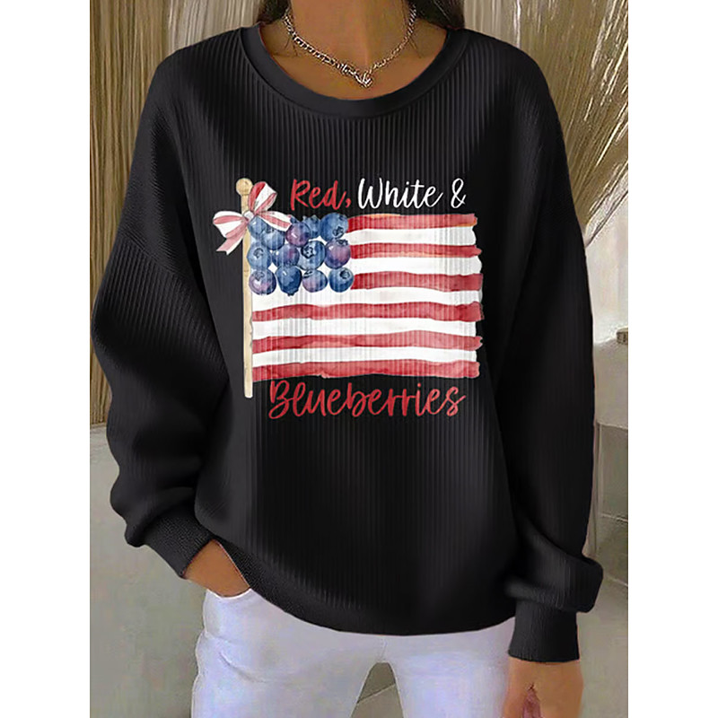 Women's Pullover Graphic Letter Warm Classic Casual Long Sleeve Crew Neck Regular Tops Casual Home Street Print Blue Light Blue Black White Red Spring Fall Winter
