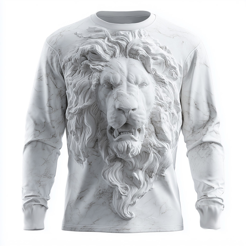 Men's Optical Illusion Lion T Shirt Long Sleeve T shirt 3D Print Crew Neck Shirt Fashion Exaggerated 3D Street Daily White White 2 Summer Spring Fall Clothing Apparel S M L XL XXL XXXL