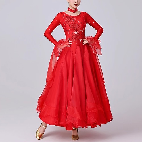 abito da ballo da sala per allenamento da donna, costumi da danza moderna, abiti standard da valzer a maniche lunghe