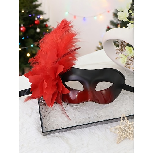 maschera da donna in piume verdi con decorazione floreale per feste di Natale, ballo carnevale