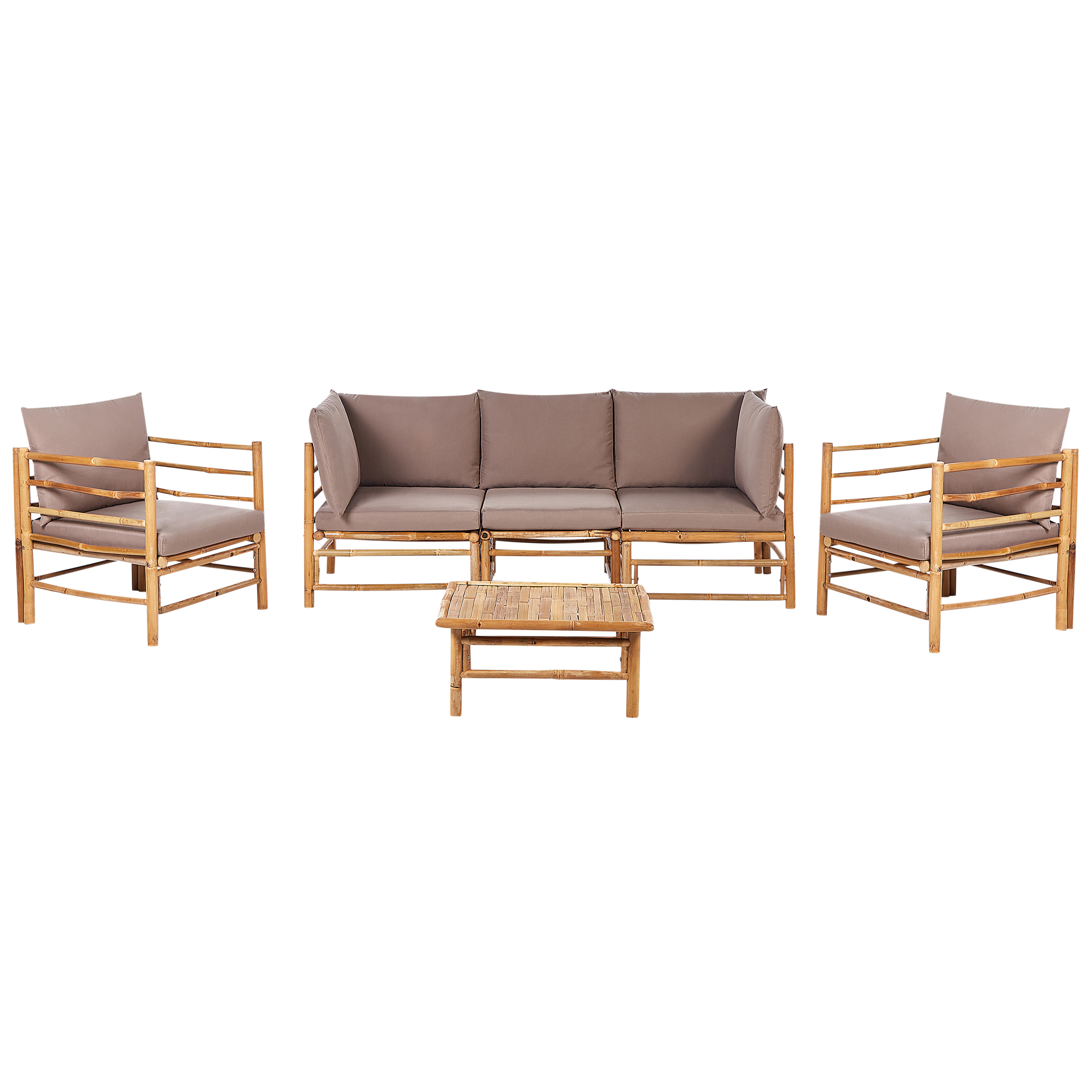 Ulkosohvaryhmä pöydällä 5-istuttava CERRETO bambu Ruskeanharmaa