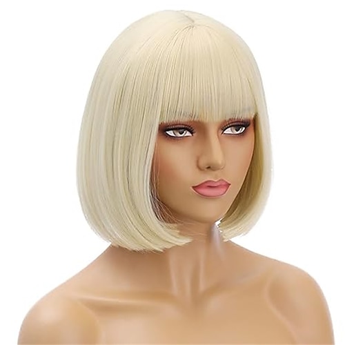 Karnevalsperücke Blond Schwarz Blau Glatt Bob Kurz Synthetische Festivalperücke Karneval Parade Cosplay-Kostümfrisur für Damen