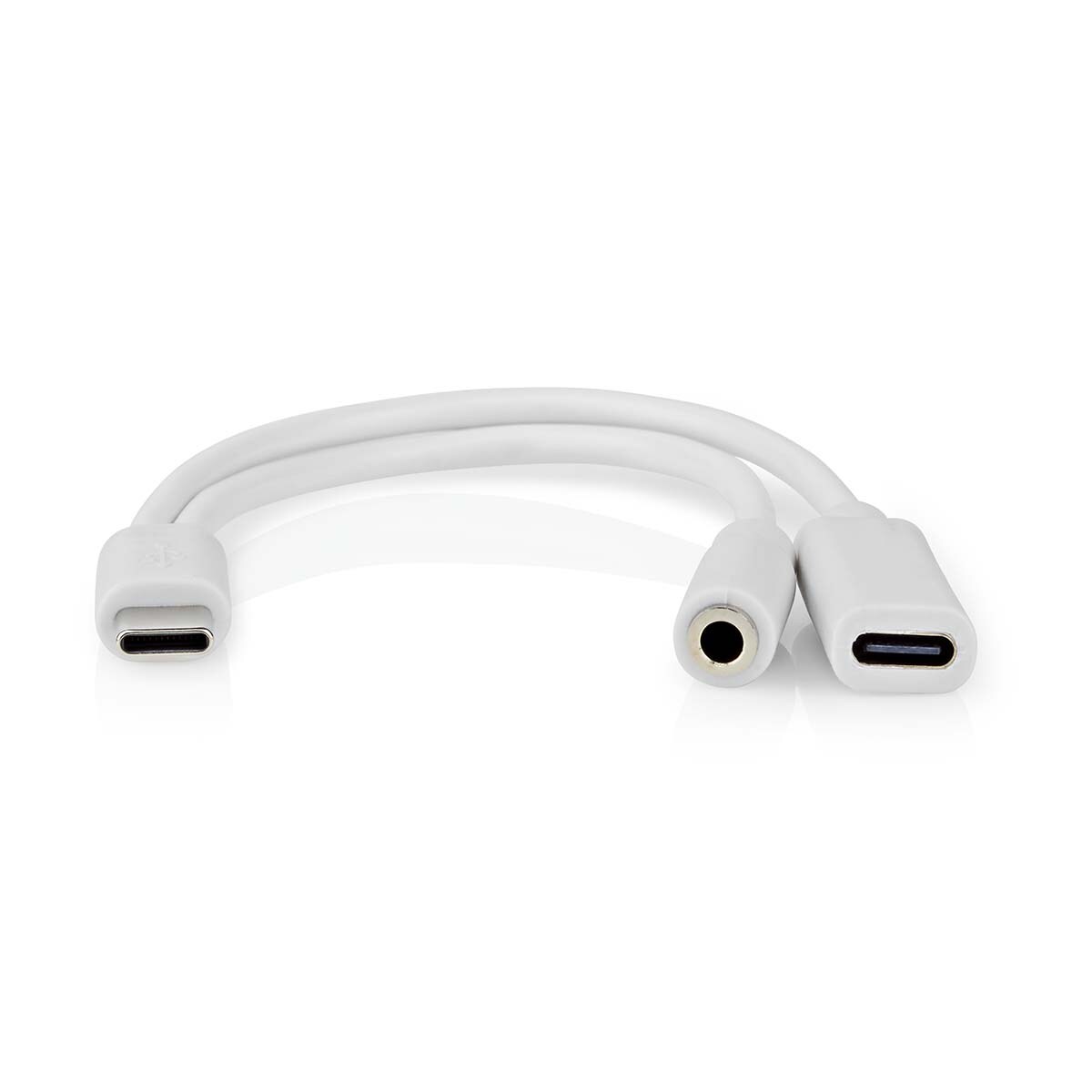 Nedis USB-C Adapter - USB 2.0 - USB-C Stecker - USB-C Buchse / 3.5 mm Buchse - 0.10 m - Rund - Vernickelt - PVC - Weiss - Box