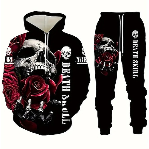 Per uomo Teschi 2 pezzi Set di felpe 3D Tuta Felpa con Cappuccio Manica Lunga Pantaloni lunghi Con Cappuccio Casual Quotidiano Moderno Urbana Athleisure Abbigliamento casual alla moda Stampa 3D