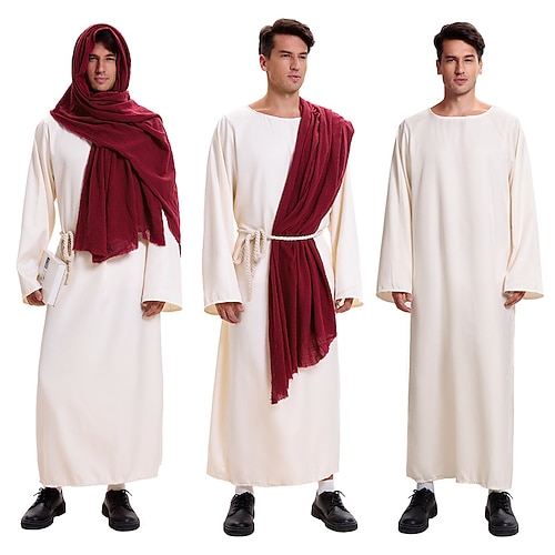Jesus Geburt Josefs Kostüm Ausgefallene Kostüme Kostüme für den Weihnachtsumzug Herren Cosplay-Kostüm Weihnachtskostüm Erwachsene Weihnachten Neujahr Leistung Party Schal Einteiler