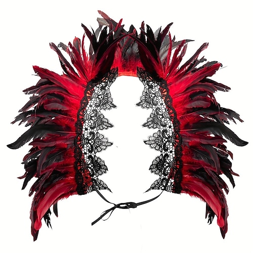 Accessori Samba del Carnevale 2026 Rio Carnevale Cuffie per Polso in Piume Rosse con Pizzo Nero per Donne Costume per Performance al Festival del Brasile