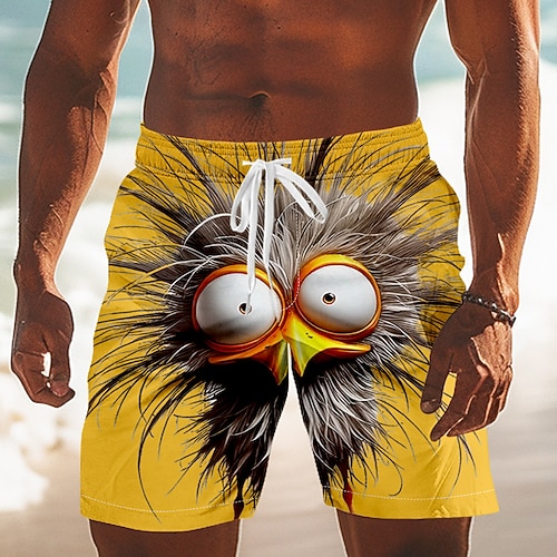 Per uomo Animale Cartoni animati Frizzle Chickens Costumi da bagno Pantaloncini da mare Pantaloncini da Surf Misura del girovita medio Divertente All'aperto Vacanza Tasche Laterali fodera in rete