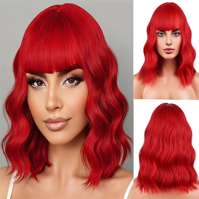 Dark Purple Wigs with Bangs for Women 14 Inch Short Wavy Bob Wigs Synthetic Bob Wig Curly Wig Heat Resistant Colorful Wavy Wig Cosplay Wigs For Daily Party