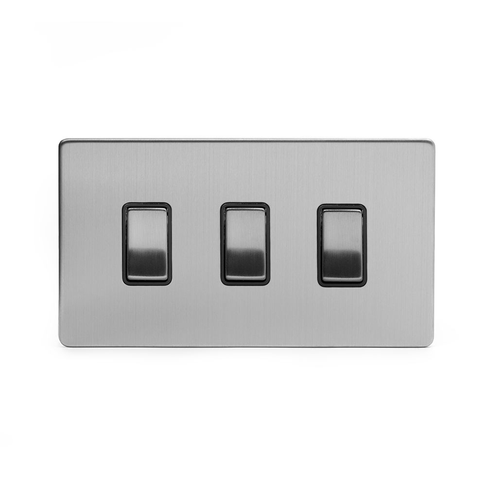 Soho Lighting Brushed Chrome 3 Gang Switch Double Plate Blk Ins 2 Way Screwless - Size: H 86mm X W 86mm