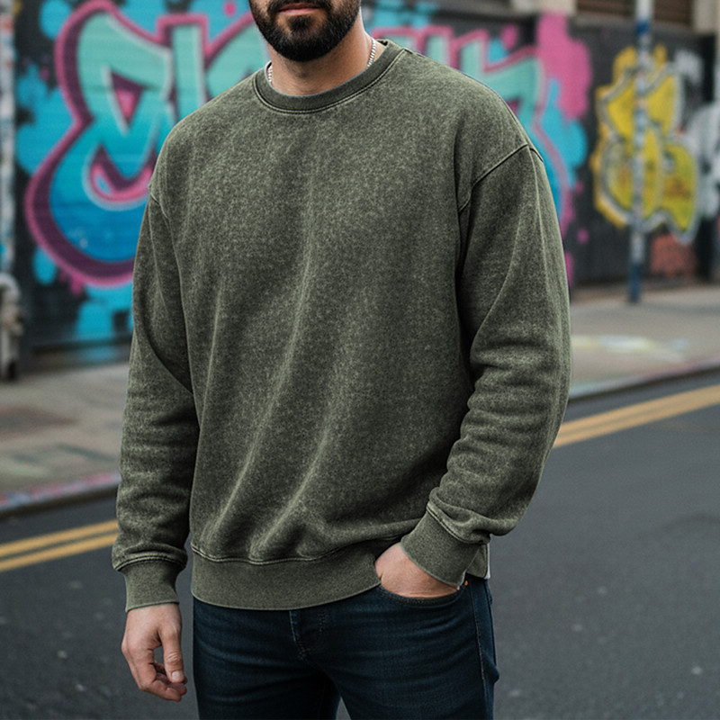 Men's Sweatshirt Distressed Hoodie Apricot Black Pink Army Green Brown Crew Neck Plain Daily Holiday Going out 100% Cotton Vintage Retro Casual Fall Winter Clothing Apparel Hoodies Sweatshirts