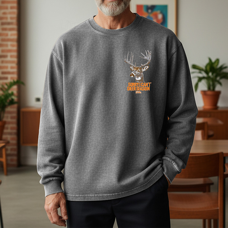 Men's Sweatshirt Distressed Hoodie Apricot Black Pink Army Green Brown Crew Neck Reindeer Print Daily Holiday Going out 100% Cotton Vintage Retro Casual Fall Winter Clothing Apparel Hoodies