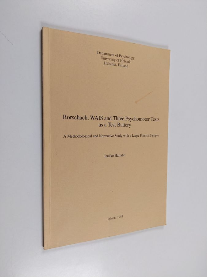 Jaakko Harlahti : Rorschach, WAIS and Three Psychomotor Tests as a Test Battery - A Methodological and Normative Study with a Large Finnish Sample