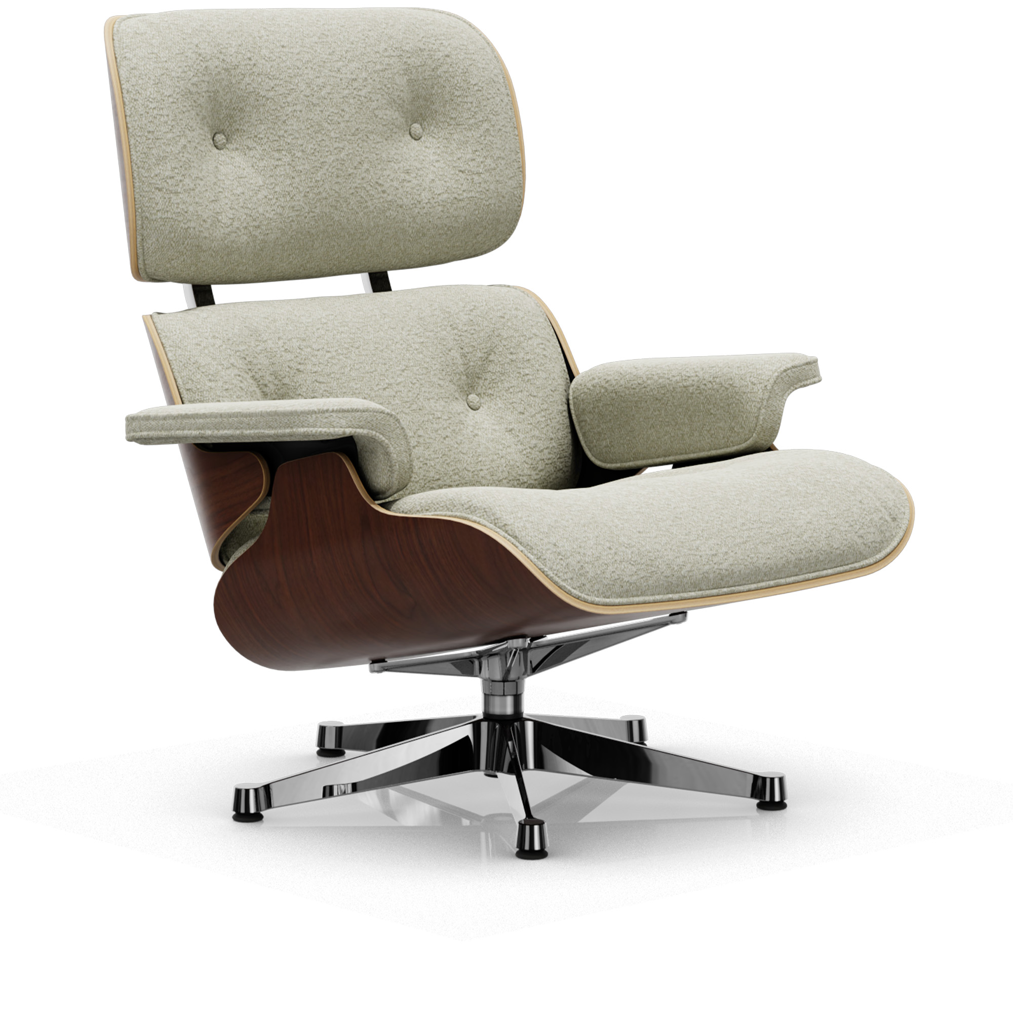 Vitra - Eames Lounge Chair Dark Walnut Nubia Cream/Sand 03 Polished Aluminium - Fåtöljer - Charles & Ray Eames - Läder/Metall/Trä