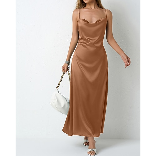 Per donna Abito Midi Abito in Raso Vestito da Festa Abito da Cocktail Abito Sottoveste Moda Moderno All'aperto Festa serale Feste Vestibilità regolare Semplice Senza Maniche Spalline Verde chiaro