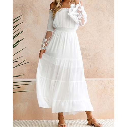 Per donna Abito Midi Abito in Pizzo Vestito da Festa Abito da Cocktail Moda Moderno Festa serale Feste Compleanno Vestibilità regolare Semplice Manica Lunga Senza Spalle Nero Bianco Estate Primavera