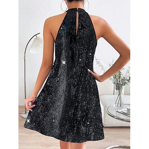 Per donna Mini Abito Abito nero Vestito da Festa Elegante Moda Moderno Festa serale Feste Cocktail party Vestibilità regolare Semplice Senza Maniche Senza Spalline Nero Autunno Inverno