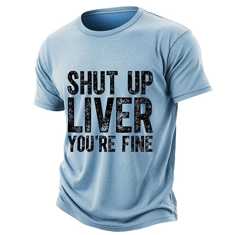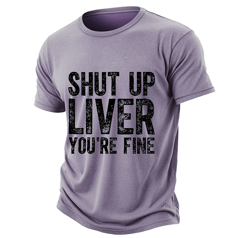 Mens Funny Drinking Shirt Shut Up Liver Youre Fine Graphic Tee Washed Cotton Blend Short Sleeve Crew Neck Casual Top Clothing Apparel S M L XL XXL XXXL