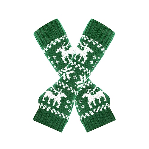 Damen-Weihnachtsstrickhandschuhe ohne Finger, rot-weißes Fair-Isle-Rentiermuster, festliche Handschuhe für Winterpartys und festliche Anlässe
