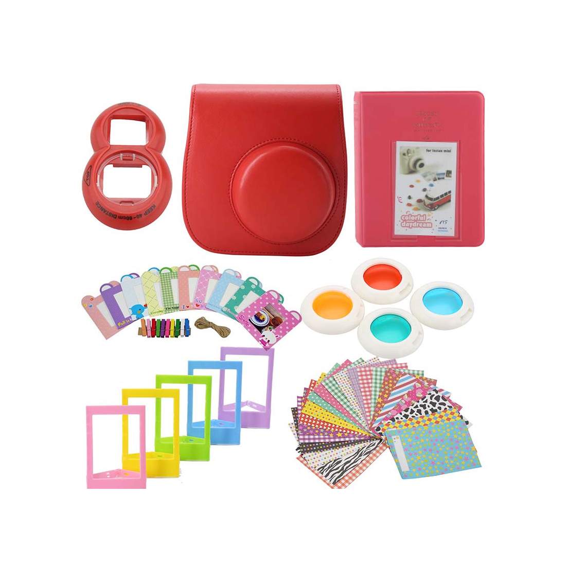 Tilbehørssett til Fujifilm Instax Mini 8 / 9 - Rød