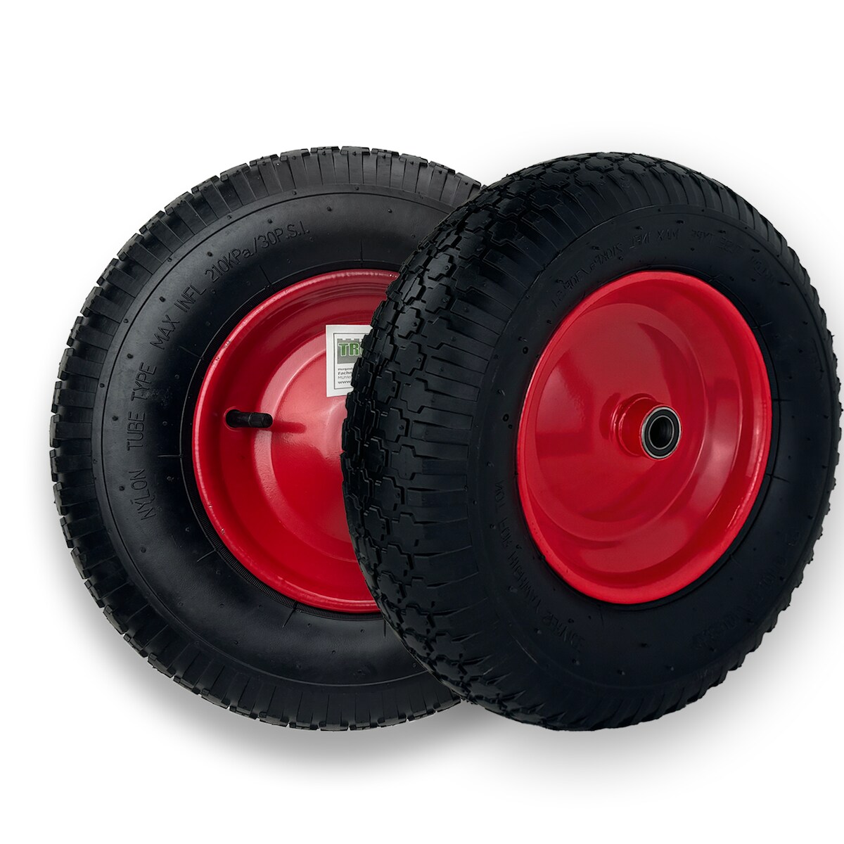 Baumarktplus 2x Schubkarrenrad 390x95 mm 4.80 4.00-8 luftbereifung inkl. Achse Ersatzrad 4PR Metallfelge 200 kg