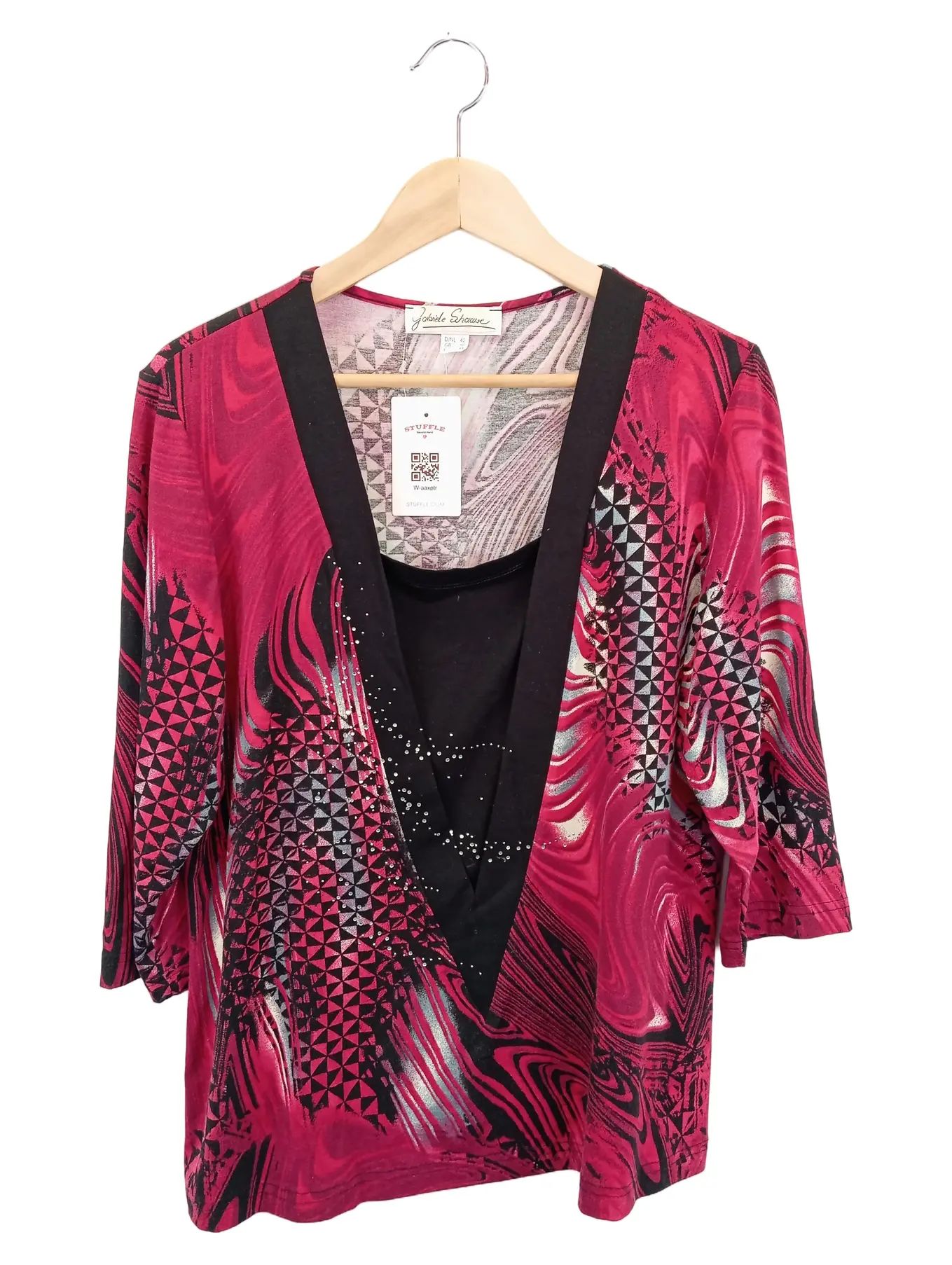 GABRIELE SCHAWE Damen Bluse Gr. 42 Rot Schwarz Muster