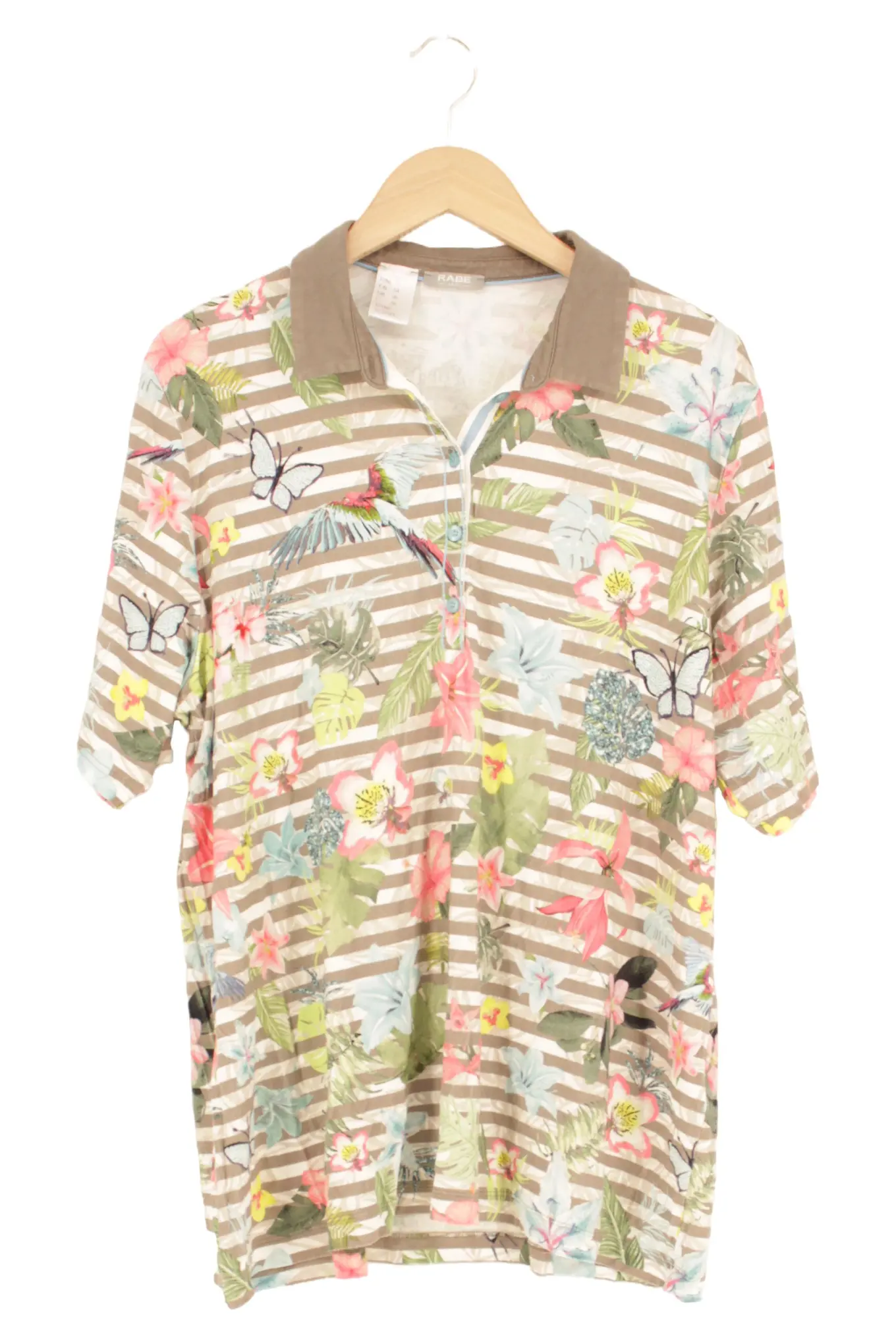 RABE T-Shirt Damen Polo-Shirt Tropisches Muster Größe 52