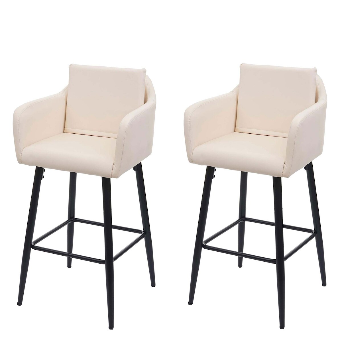 Mendler 2er-Set Barhocker HWC-H93, Barstuhl Tresenhocker, Fußablage Metall ~ Stoff/Textil creme-beige