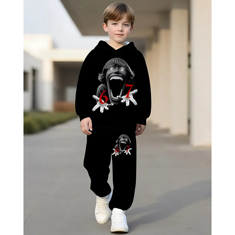 Unisex Boys' 3D Graphic Funny Slang 67 Hoodie Sweatpants Set Sports Suit Tracksuits Long Sleeve 3D Print Spring Fall Sports Fashion Casual Kids 4-12 Years Hooded Outdoor Street Regular Fit