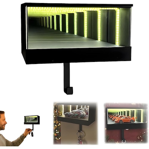 Portachiavi da garage infinito, portachiavi da garage per auto con montaggio a parete, portachiavi con lampada a LED con specchio illusione 3D, facile installazione per ingresso, corridoio, ufficio,