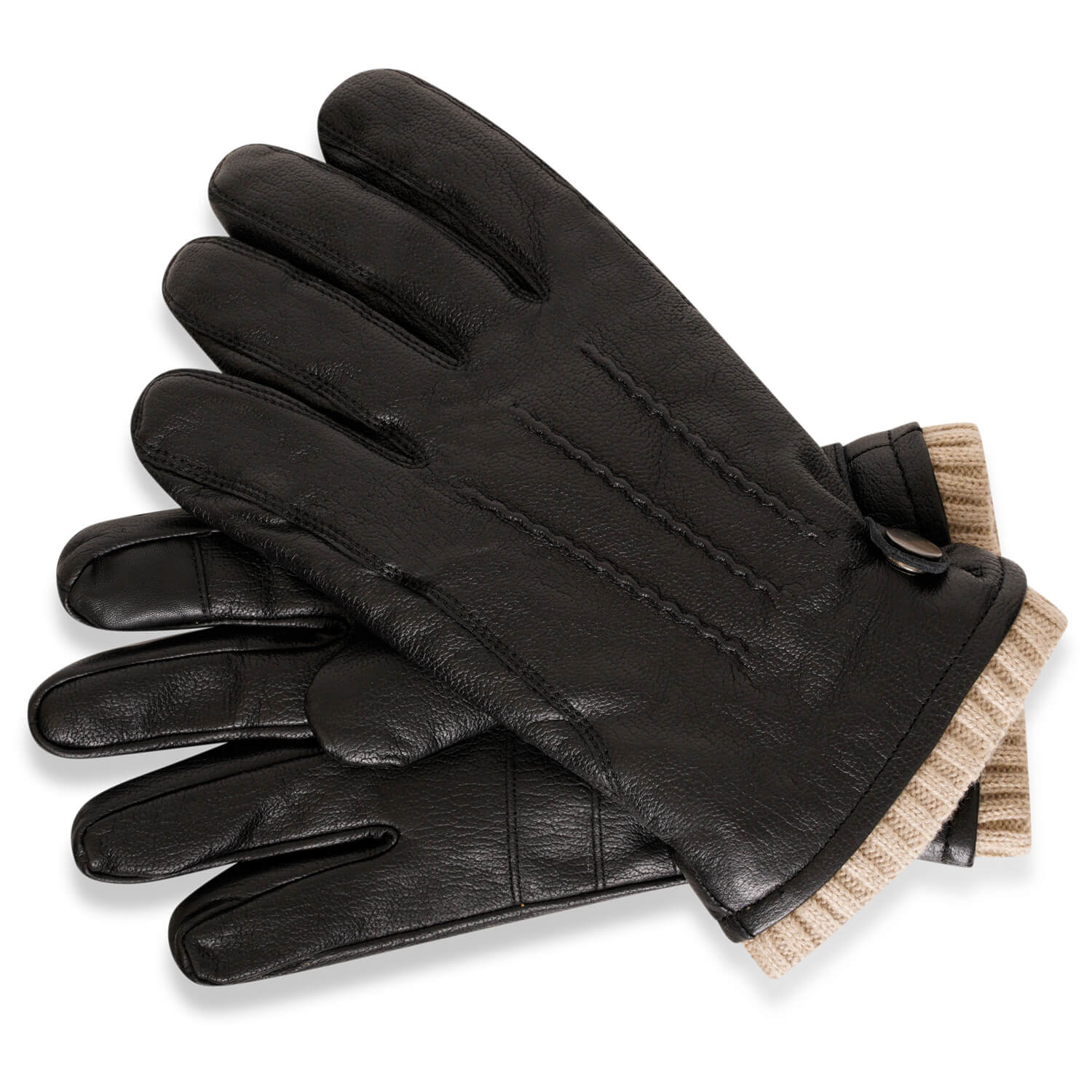 Barneys Originals Mens Black Goat Leather Glove With Cream Knit Cuff - Size Medium/large | Barneys Originals Sale | Discount Designer Brands