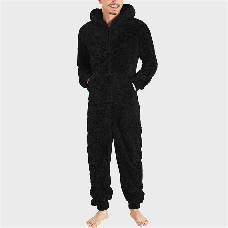 Men's Loungewear Bodysuits Sleepwear 1 PC Plain Warm Fashion Stylish Home Daily Bed Sherpa Polar Fleece Thermal Warm Comfort Soft Hoodie Long Sleeve Pocket Fall Winter Light Pink Black