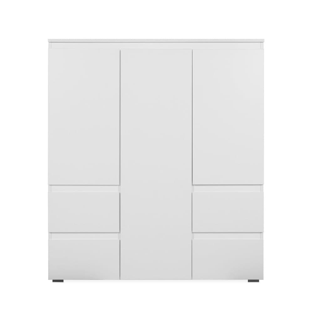 Buffet haut 3 portes, 4 tiroirs et 5 étagères - L116 cm - Bianco