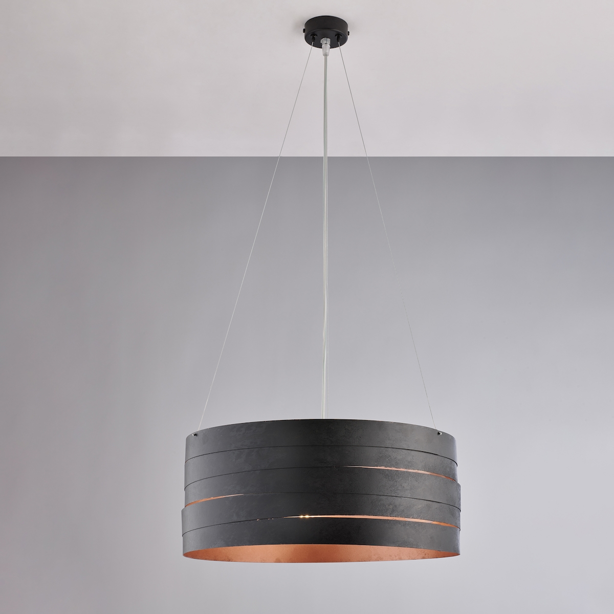 Belight - Mambo - Pendelleuchte Eisen schwarz/Antikkupfer, Ø45, 3-flammig, höhenverstellbar - BL157-3-NRM