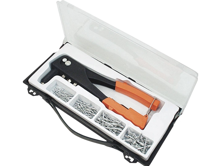 BRÜDER MANNESMANN teräksinen käsintappaussarja, jossa on: käsintappauslaite, niitinpoistolaite, 200 x niittiä - 1 kpl (48440)