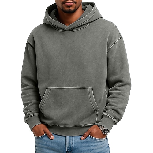 Per uomo Felpa con cappuccio Rosa Viola Verde Cachi Grigio chiaro Con Cappuccio Semplice Tasca a marsupio Casuale Quotidiano Sport Outdoor Vintage Streetwear Cool Primavera Autunno Autunno