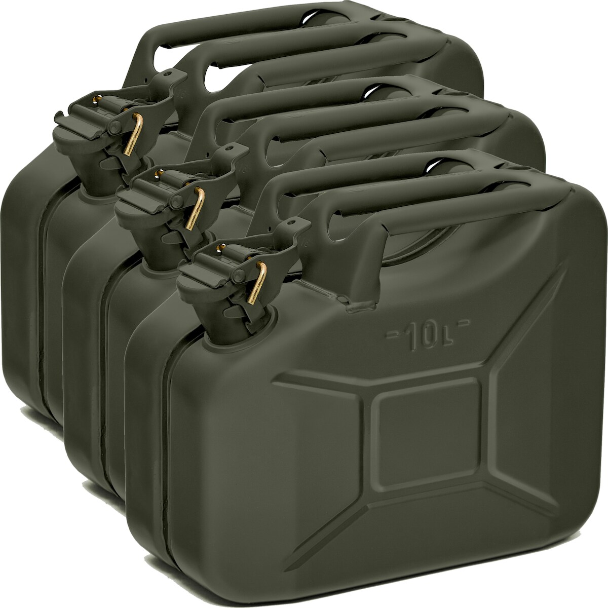 BW® Kraftstoffkanister Metall Benzinkanister 3x 10 Liter - Bronzegrün - RAL 6031-F9 - TÜV-geprüft und UN-Zulassung - Made in Europe