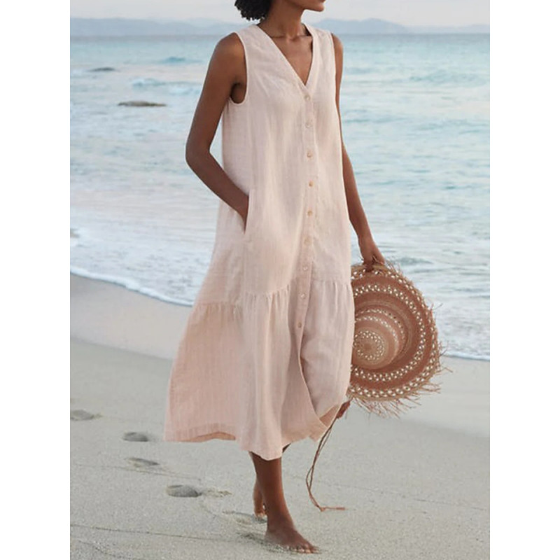 Women's linen like Midi Dress Shift Dress Summer Dress Casual Daily Loose Fit Plain Sleeveless V Neck Blue White Light Green Pink Summer